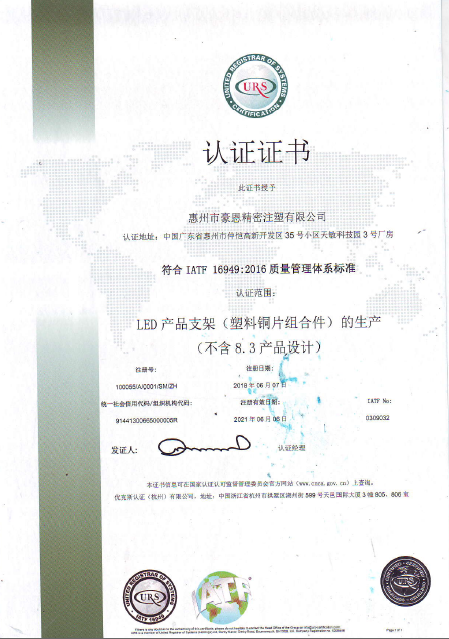 In June 2018, passed the IATF16949:2016 quality system certification.